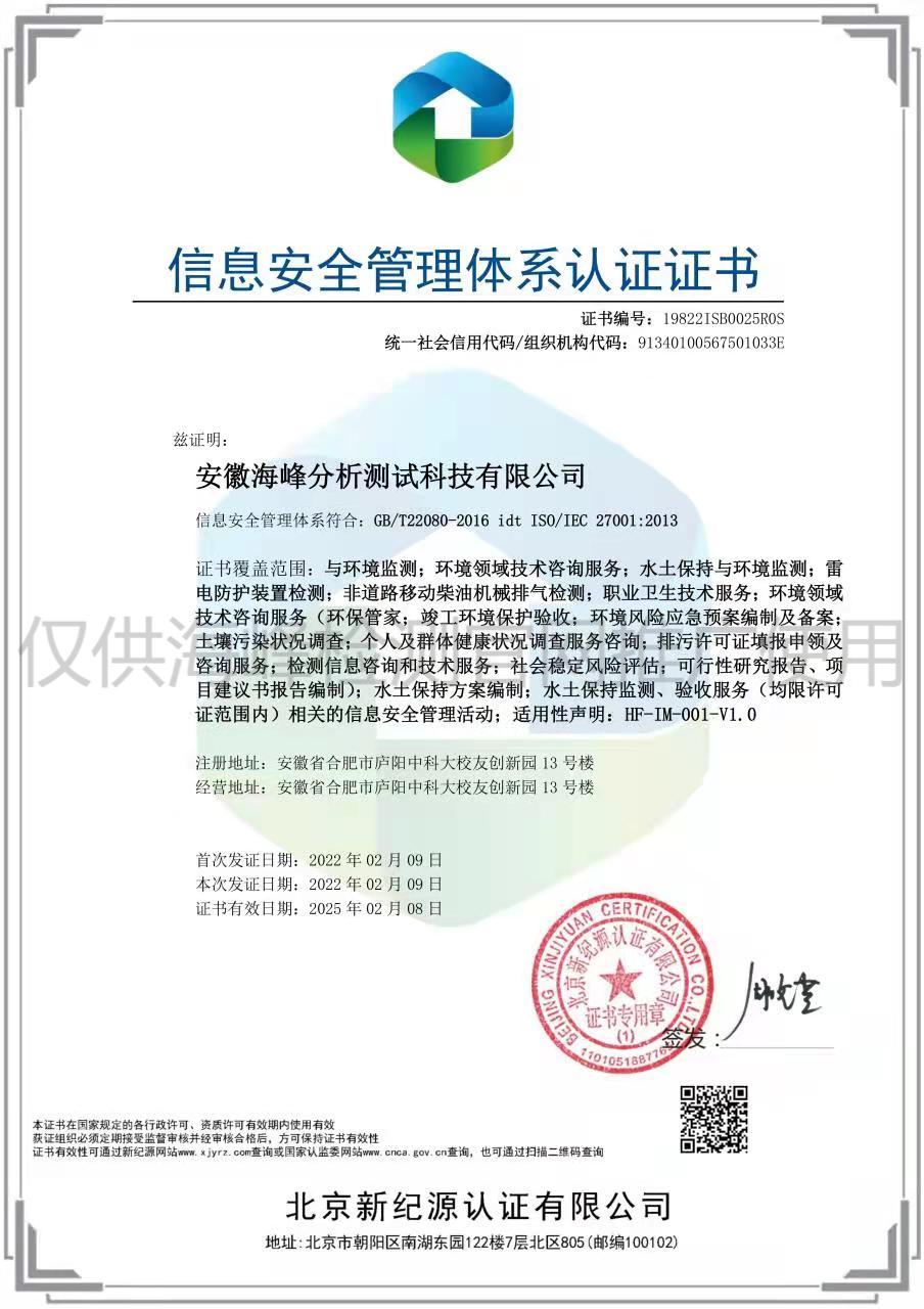 安徽海峰分析測試科技有限公司(以下簡稱海峰檢測)成立于2010 年,隸屬于安徽方中科技集團有限公司,公司下設安徽遠通檢測科技有限公司(安慶)、安徽安海新環境科技有限公司(亳州)。